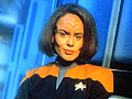 | File Update: I have never regretted my decision to assign Torres the brevet rank of lieutenant or make her my chief engineer. She is tough, knowledgeable and independent, and sometimes seems an echo of myself at her age in her department, but her mixed heritage has manifested itself in a state of confusion and denial that I hope is not personally insurmountable. Now that B'Elanna is unable to release her frustrations through fighting the Cardassians, she must learn to accept herself and her conflicting heritage; I recall how far she has come since her diatribe against my order to destroy the Caretaker's Array when we first arrived, and her reaction to Tuvok's grumbling "boot camp" Maquis bears out my faith in her. Episodes such as the Vidiians' kidnapping of her to test Klingon tissue for its Phage-resistance does not hurt, although I was gratified to see she allowed such a sample taken a year later to aid Dr. Danara Pel, who later in turn helped our crew when Chakotay and I were fatally infected and left behind. It hurt me to put her on report following the Sikaris insubordination. Torres was also driven by guilt to stop "Dreadnought", the code name of a Cardassian doomsday missile she reprogrammed as a Maquis in mid-2370 to hit its makers' fuel depot at Aschelon V and swept up by the Array to into the Delta Quadrant. She launched it as a super-killer without Chakotay's permission - even though she programmed it to warn Federation ships. B'Elanna was also away from us when a Cravic fighter robot she reactivated here kidnapped her to its vessel to give its kind the secret of replication that had all but halted their undying war with Praylor robots, since neither could reproduce after both sides eliminated their makers and kept fighting. CROSS-EXCERPT, related file, Chakotay personal log, SD 50246: Sometimes I wonder about my B'Elanna. I know she's honest, but the erotic Enaran dreams she experienced are I trust not a product of her own psyche. It' s none of my business of course, but even though she dates I do worry about her keeping to herself too much. I just hope the flirtatious sparring she gets from Tom Paris these days doesn't lead to more hurt for her. Personnel file addendum: I have nothing but praise for my chief engineer as we near our third year in returning home, despite her unusual behavior with the Enarans, whom I had hoped to make as a new ally. But B'Elanna is nothing if not brutally honest, and though my own inquiry failed to turn up concrete proof of her story I cannot help but feel we are better off without allies whom she claim engaged in a Holocaust-like purge and then ignored the horror. |