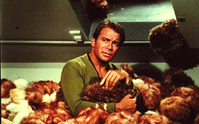 Kirk and Tribbles from "The Trouble with Tribbles" |