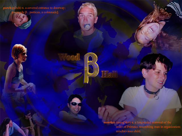 The explanation for the content of this image can be seen on my school friends page. I will focus on how it was created. I was experimenting with Photoshop 4.0, trying out different things with layer masks, diffusion masks, etc. The only part of this image not created in Photoshop is the gold "Beta" in the middle. That was created in Infini-D and them imported in. The background is a combination of randomly picked colors, a KPT Lens Effect, and an Eye Candy plugin.