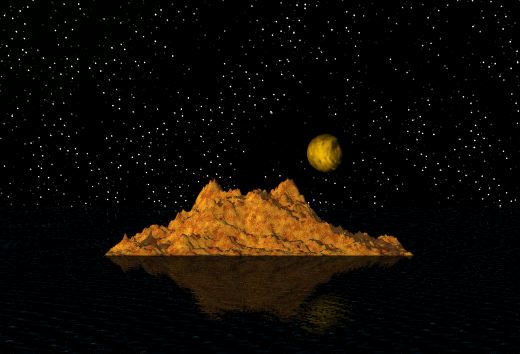 This image is one of my first decent experiments with KPT Bryce 1.0. First of all, KPT Bryce is a great peice of software for creating a new universe. Anyway, when doing this image, I was experimenting with reflections a little bit. It is a pretty simple scene: a small terraing set into an infinity plane with a sphere behind and above it. As you can see though, it lacks realism because of the cheesy sandstone texture and the lack of haze or fog towards the horizon. That's alright though. It wasn't meant to look real. These were my early days of computer graphics, and I was just trying things out.