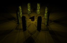 ![]() | In ancient times, philosophers, alchemists, wizards, etc. would use rings of stone as places of power. The circle is a magical shape. In a ring of stones, there would be a table, and on this table they would place objects to be offered to the particular demon that inhabited that ring, and they would ask for insights about the universe. Here we have a ring of eight marble pillars, one for each point on the compass, lit only by torch-light. In it's center is a table of obsidian with a rose growing from it. So, enter the speaking ring, listen to what the demon has to tell you, and gain some insight about the universe. |
