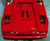 Compare with the LP500S's engine, the 48 valves QV unit is very powerful and revvy, it is surely a gem. The extra power is mainly achieved from the larger valve area, and the repositioned Weber carburettors - now mounted vertically instead of horizontally to enable straight forward engine breathing. However, this resulted in a large mound on the engine lid, thus deteriorated the precious rear vision.