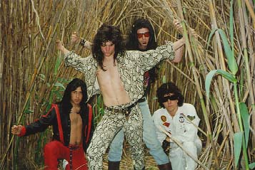 The white-jumpsuited guitarist added life on the island was very difficult. In addition to no electricity or running water the band had to create their own hairspray using monkey piss and their own semen. "It really holds your hair out there, but you wind up stinking like Don Johnson's feet after a day of chasing bad guys without socks (editors note - he is referring to Don Johnson in 'Miami Vice' a television show from the 80s, not the present incarnation on 'Nash Bridges' with Cheech)," Risblum said. |