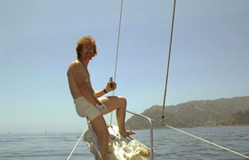 Randy R. "Sugar Rod" Rogers cruises for babes on his 40-foot sail-powered version of The Love Boat, Friday afternoon in Buscuit Bay. Rogers' pleasure craft, "The Skin Skimmer," is his last hope to get laid. |