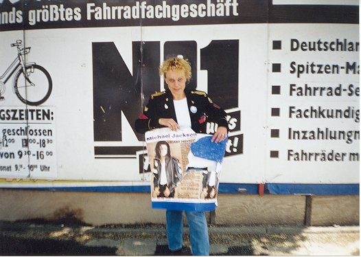 A reporter and photographer from a Munich newspaper approached me and asked me if I wanted to be interviewed in German for their paper. Ofcourse I wanted that and I told the lady all about my special love for Michael. My picture was taken several times, when I was standing next to the promoposter and I "kissed" Michael for the picture as well!! LOL
