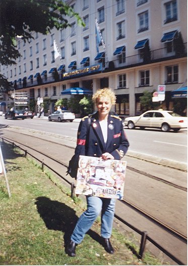 After a nice German breakfast and making inquiries about Lucky Girl's whereabouts, we left to check Michael's hotel again. There were just a few fans now. The press was already there and I was interviewed by a Munich TV station, called MTV (!!). The reporters asked us all about where we came from, what Michael means to us, and they told me my MJ jacket was the coolest! LOL The reporter told us he was an MJ fan himself and that he had seen the BAD Tour live. He also had a special videotape with MJ dancing with James Brown and Prince (TAFKAP)! He promised me to send it to me when I gave our