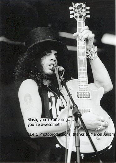 Papa Bear and I left the fans department and left the stadium via the Press stand again. Before leaving there we received a promo poster for the concert, a promo letter (a press release) from Michael and we could take some pictures with us from the performing artists. I chose a picture from Slash, cool!, thanks to s.e.t. Photoproductions.