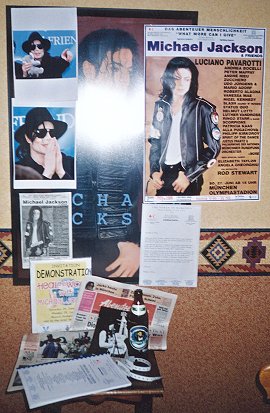 The MCY.com-representative handed over the 50.000 $ cheque to Michael, as a donation for the good cause of the concert. The Olympia Stadium Manager handed over some Bayern Munchen soccer outfits for Michael's children, but Michael immediately donated them to the Kosovo kids! Cool!