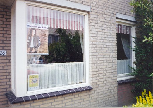 a complete "Michael -Jackson-at-his-hotelwindow-SHOW"!Teddy told us to move a bit to the right of the hotelfront, because Michael's room was there. And yes, Michael's hand waved to us from a window! A fewminutes later that same hand waved to us from a window on the other side of the floor, it was so funny! Michael sure was in the mood to have some fun with his fans that night!