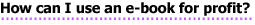 of extra dollars each month just by selling e-books over the Internet. The fact is this: If you are able to read and write simple English and if you are willing to follow a few simple steps, then you are also able to earn a living online by publishing and selling your own information products. Let's take a look at how this is done: People on the net are looking for information and solutions to make their life easier... if you can provide them with this information professionally and without all the hype and fluff that most Internet sites do, people will be more than glad to pay for it. They want the meat and you can feed them with it. This looks like a good scenario for a business doesn't it? Studies show that over 85% of the purchases people make are based on impulse. Buyers want their problems solved and they want it now! With e-books, you can deliver the information they need right away. E-books are delivered electronically right after a user pays for it... all the hassles of conventional mailing, shipping costs, wrong addresses, maintaining a stock, etc. are entirely eliminated! Yes!, as a matter of fact, anyone can write a book just by following a few simple steps. If you're able to communicate an idea to someone else, then you've got what it takes to write your own e-book and market it on the Internet. The process is actually pretty simple. All you need is to have an interest for any topic and gather enough information about it to write a report... hey, thousands of kids do this every day at school, don't you think you can do it too? Yeah... I thought so. =) There are literally infinite ways in which you can profit form e-book publishing, the only limit is your imagination... Here's a short list of the way you could use them: Products.- E-books make excellent products! Once you own the software, there is no other cost involved in created an unlimited number of e-books. A single book could easily generate you an extra $2000-5000 a month... can you imagine what it would be like selling 5-6 books? Back-end products.- Once you have sold your first e-book to a customer, and if you delivered a good products, you'll easily be able to sell him other (more expensive) e-books on the same or related topics. Freebies.- Traffic on your site means sales to you... and one of the best ways of generating a lot of traffic to your site is by offering free stuff. An e-book costs you nothing to produce and makes a great freebie for users to download. Plus your e-books can have links that go directly to your site - this means perpetual unlimited traffic! Ezines.- Yes, since it costs you nothing to create e-books, you could also make your ezine more attractive (and give it a larger time frame than those that are emailed). If people like your ezine, they will share it with friends... and your user base will explode! Catalogs.- E-books don't necessarily need to be books... you can easily turn one into an eye-catching catalog that's fully integrated with your shopping cart. Then burn it on a CD and impress all your prospects. Are you starting to see the power of e-book publishing? Presentations.- E-books can be turned into fully-interactive presentations! With one of these, you can give your visitors a better picture of your products, presenting them with audio, video and photographs... This will surely turn some prospects into buyers! And the list goes on and on!. Once you get on the e-book bandwagon, you will start getting better ideas to make your life a very profitable one... Now, here's what you need to get started: Here's the good news: Publishing and marketing your own e-books is easier than you think! Actually, all you need to have is a computer (which of course you have or you wouldn't be reading this) and... |