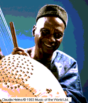 Entre los instrumentos de cuerda populares en África se encuentran los arcos musicales, laúdes, liras, arpas y cítaras. Los músicos profesionales del pueblo mandinga de Gambia tocan el kora, un arpa-laúd de 21 cuerdas, que incluye tanto cuerdas pulsadas como otras que resuenan por simpatía. El xalam, un laúd de pulso, es un pariente cercano del banjo afroestadounidense y es un instrumento popular en Senegal. El arco musical, que consiste en una cuerda atada por ambos extremos a un arco flexible, juega un papel especialmente destacado en la música tradicional de los pueblos del sur de África como los san, los xhosa y los zulúes.