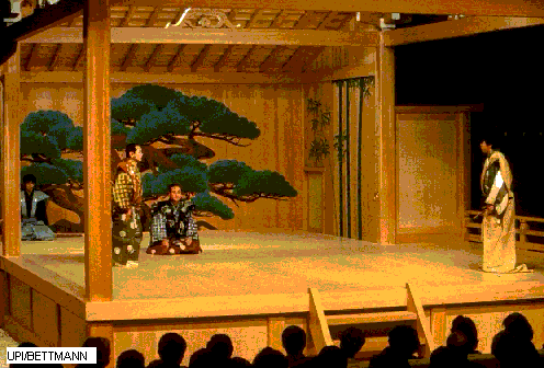 El teatro no japonés está inspirado tanto espiritual como artísticamente en el budismo zen. Una obra de teatro no consta de música, coreografía, textos y efectos dramáticos. Por lo general la música instrumental, la música vocal y la acción están estrechamente relacionadas entre sí.