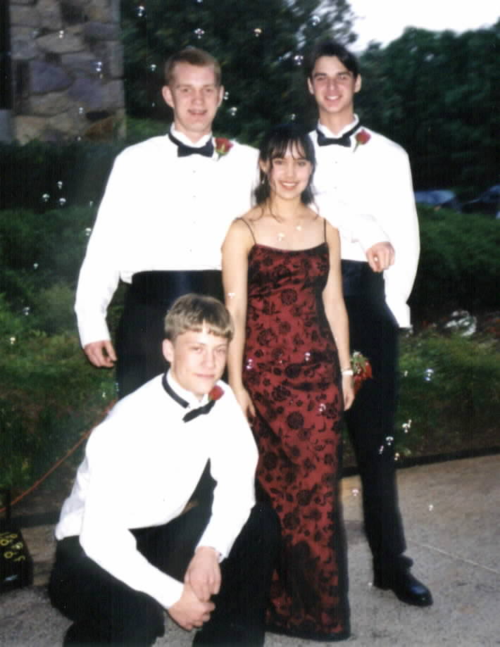 This is my favorite picture from the prom. I shall embellish it forever. :) This is only four of the thirteen Junior Marshals. Don't let this picture mislead you; there were more girls than guys in the top thirteen of the class. Nathan, the funniest guy in the world, is in the front. Steve is on the left, and Ivan is on the right. Who says that I can't have all the good-looking, sagacious guys?