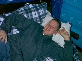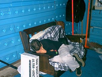 ![]() Mike relaxing in the practice room. The guys getting annoyed at Mike for receiving yet another phone call.