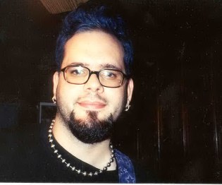 me with blue hair | me with blonde hair | me with no hair | me with red hair | me playing bass | me playing guitar | me playing with the dog | scary picture | me as a thug | most recent | more recent