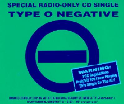 Other Type O Negative Stuff: Singles and promos- Slow, Deep and Hard- Unsuccessfully Coping with the Natural Beauty of Infidelity promo CD single 1. Unsuccessfully Coping With The Natural Beauty Of Infidelity ("I Know You're F*cking Someone Else" extended mix) 2. Unsuccessfully Coping With The Natural Beauty Of Infidelity ("I Know You're F*cking Someone Else" edit) 3.Unsuccessfully Coping With The Natural Beauty Of Infidelity ("I Know You're Beep-Ing Someone Else" PMRC mega-edit) 4. Gravitational Constant : G=6.67 x 10-8 cm-3 gm-1 sec-2 Bloody Kisses- Bloody Kisses promo CD single 1. Machine Screw 2. Christian Woman 3. Black No. 1 (Little Miss Scare All) 4. Summer Girl 5. We Hate Everyone Black No. 1 promo CD single 1. Black No. 1 (Little Miss Scare All) [edit] 2. Christian Woman [edit] 3. Summer Girl [edit] 4. We Hate Everyone [edit] ![]() Christian Woman CD single 1. Christian Woman 2. Christian Woman 3. Suspended in Dusk Bloody Kisses Digipak- ![]() Black No. 1 promo CD single 1. Black No. 1 [edit] 2. Black No. 1 [lp version] ![]() Summer Breeze promo CD single 1. Summer Breeze [new version] 2. Summer Breeze [full length new version] 3. Blood & Fire [new version] 4. Christian Woman [edit] October Rust- My Girlfriend's Girlfriend CD single ![]() Love You to Death CD single (Europe only) 1. Love you to death (edit) 2. Summer Breeze (Rejected Radio Release) 3. Love you to death (full lenght) In Praise of Bacchus promo CD single 1. In Praise of Bacchus ![]() Cinnamon Girl CD single 1. Cinnamon Girl (Depressed Mode Mix) 2. Cinnamon Girl (US Radio Mix) 3. Cinnamon Girl (Extended Depression Mix) 4. Cinnamon Girl (LP Version) Soundtracks, Compilations and other stuff- I Know What You Did Last Summer Soundtrack Type O Negative= Summer Breeze ![]() Howard Stern's Private Parts Soundtrack Type O Negative= Pictures of Matchstick Men (w/ Ozzy Osbourne) ![]() Mortal Kombat II Soundtrack Type O Negative= Blood and Fire (Out of the Ashes remix) ![]() Nativity in Black: A Tribute to Black Sabbath Type O Negative= Black Sabbath Descent II (CD-ROM) Type O Negative= Haunted (Instrumental) If you have anything I should add to this list (cause I'm sure TON has more stuff than this) please E-Mail me. Please give as much information as possible. |