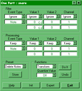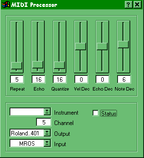 The MIDI processor is probably one of the easiest modules to use in the Cubase program, and is probably one of the most fun and useful aswell. The whole processor is basically a delay unit with a bit more to offer that can be applied to any MIDI parts in a piece of music. The module is quite small compared to some of the others with only 6 faders to play with. The faders are as follows;