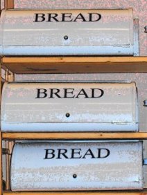 Единственное, что спасает, это возможность выпить и закусить. С этим всё в порядке, иначе воспринимать действительность было бы фактически невозможно... Налево бухло, направо хлеб. Нет, вы обратите внимание на эти хлебницы!!! Совок 70-х. У вас такое дома было? А как же! Стояла, красавица, с уезжающей крышкой... |