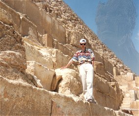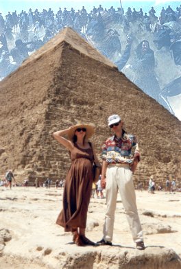 "... когда Александрия была доступна жителям Греции, существовали семь чудес света, слава которых затмевала остальные диковинки древнего мира, и увидеть эти чудеса стремились многие. Шесть из чудес - сады Семирамиды в Вавилоне, статуя Зевса в Олимпии, храм Артемиды в Эфесе, Мавзолей - гробница царя Карии Мавсола, Колосс Родосский и Александрийский маяк на острове Фарос - были разрушены временем. Сохранилось только одно из "чудес света" - египетские пирамиды..." *** Пирамида Хафра, 140 метров, 5280 тысяч тонн камня, июль, жара, Казик на переднем плане со своей безумно отважной женщиной, прилетевшей в Египет наслаждаться этим "последним из семи чудес" вместе с Машкой, которой на тот момент "минус 3" месяца... |