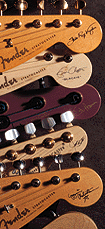 Most electric guitar necks are made of mahogany or maple. They must be stiff because if they vibrate too much, sustain and tuning become unstable. Fender uses rock maple, which gives it a sharp sound. Laminate neck, those using many strips of wood, are used by Gibson to increase stability and consistancy. Composite necks, using alternate materials with or without wood, are used in bass guitars to eliminate the loss of sustain.