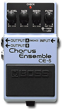 Chorus adds movement and depth to a guitar's sound and is based on time delay. It can best be described as an "underwater" sound. The BOSS CE-5 is very good. An example of the chorus effect is Nirvana's Come as You Are.
