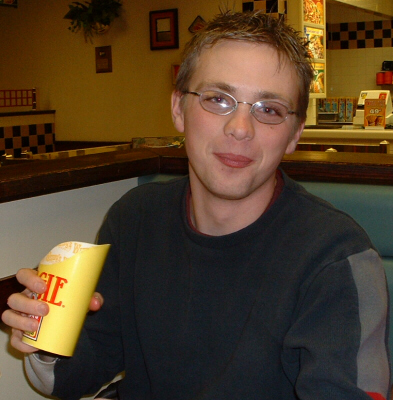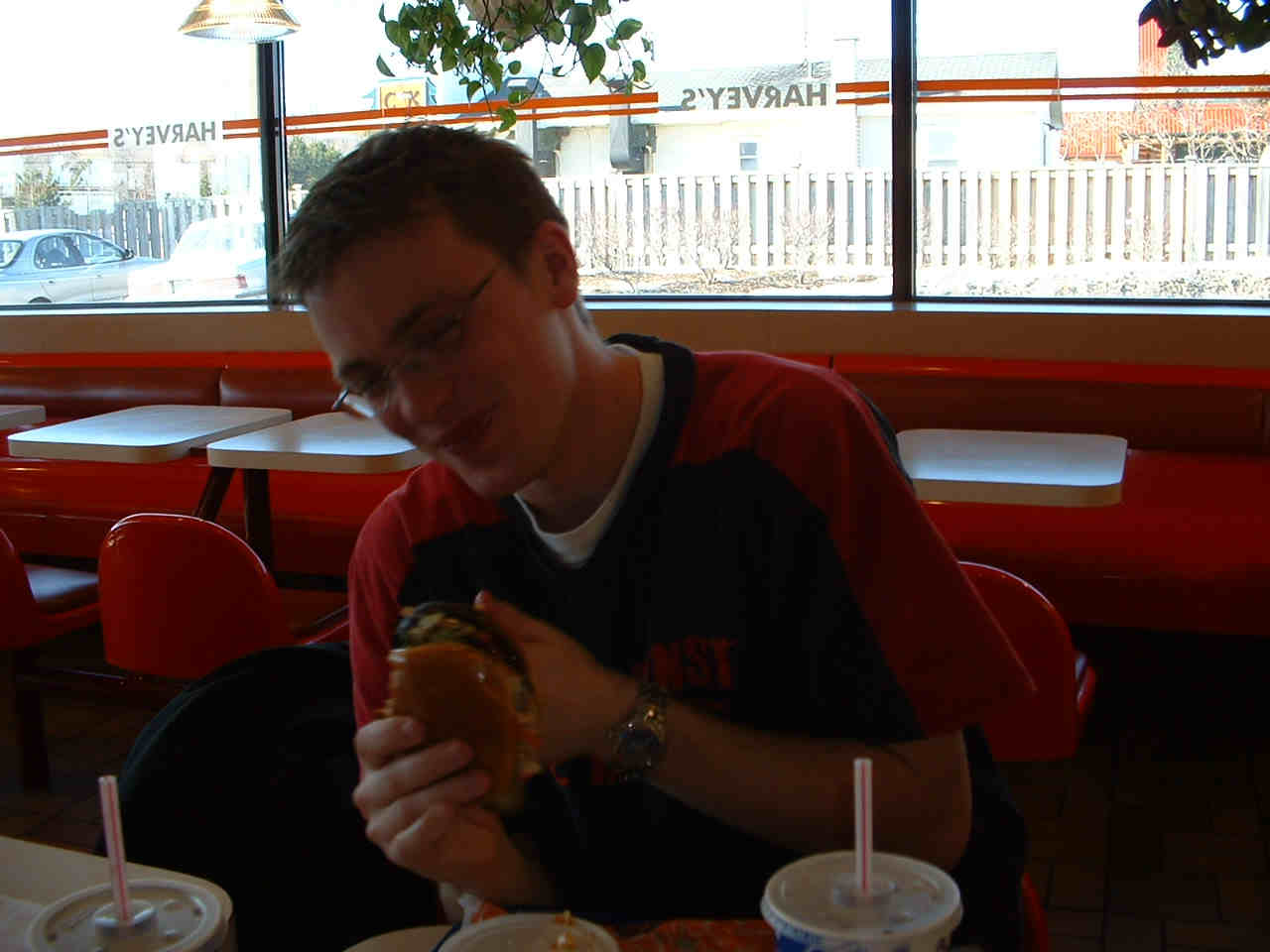 Grimey enjoys a lunch break Eric and Mark eat out at Harvey's