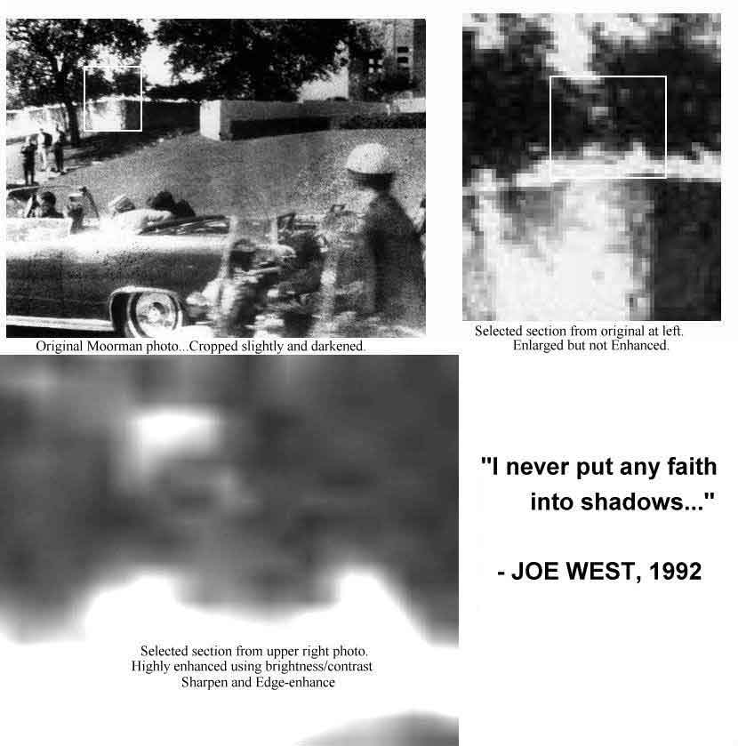 THE MAN BEHIND THE STOCKADE FENCEWe graciously acknowledge [email protected] for his work on the Moorman photo taken on 11/22/63. It was brought to our attention by Mr. Fred Glazier of Texas. We added the quote from the late Joe West, but we do think that the public should see this picture and MrKite's work. So, for the benefit of MrKite, here it is.