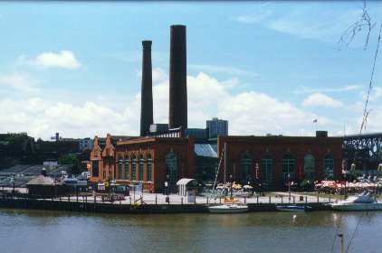 � Main Avenue Bridge over Cuyahoga River ��������������������������������� � Powerhouse and Nautica Entertaiment Complex