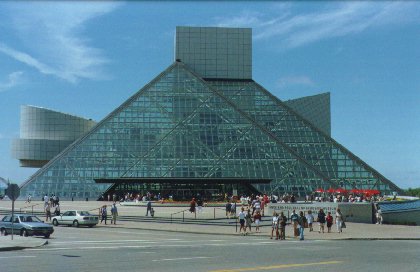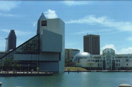 The Great Lakes Science Center (right) and the Rock and Roll Hall of Fame