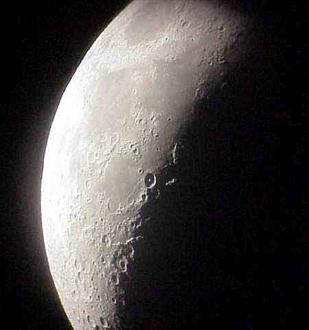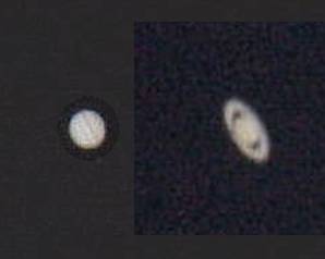 Right: Jupiter seen through my Unitron 4 inch refractor. Photographed with Sony Mavica digital camera, October, 1999. Below: Two photos of the moon taken on the same evening as the picture of Jupiter. If you were "socked-in" and missed the January lunar eclipse, here are some pictures. ![]() ![]() By the way... If you want to understand why the moon was red during the recent eclipse, check out the following link, Red Moon Rising. | Gas Giant Jupiter | |||||||||||||||||||