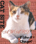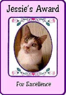 Oreo thanks all who have given her awards. She works hard...uh...supervising all that her master does on this page. The awards are in the order in which they were recieved, with an approximation of the date on which they were won.