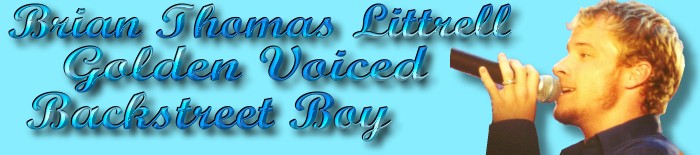 Welcome to my dedication to the one and only Brian Littrell, the Golden Voiced Backstreet Boy who so many of us love with all our hearts. Brian is my favorite Backstreet Boy and I want to share with you all. Please take your time and wander through each page, enjoying each and every picture, article and Brian piece of information to the fullest. And as Brian would say, "Click off on some information that you want."