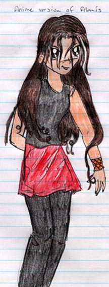 I'm really into anime and manga right now so I thought I'd draw Alanis Anime-style. If nothing else she's extraordinarily sexy. (j/k)