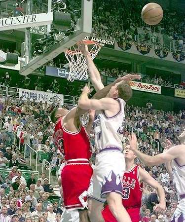 Pippen playin wit a back spasms, still has enuff strength to block this