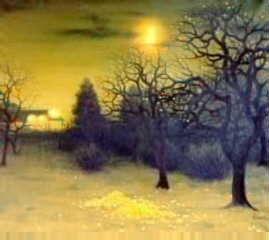 First Cool Night We make love on the first cool night of autumn with my eyes entranced by the subtle sensuality of your shapely silhouette accented by the harvest moon and twinkling stars that shine against a chilled and blackened sky Through a slightly fogged up skylight with its tiny dewlike droplets gathering in the lowest corner I do not think about the swelling droplet that might strike against the naked and warm flesh of your femininity or could I even care Instead I let my ears and other senses weave a tapestry of feelings that slowly sweep me within a spinning vortex that engulfs me even as the cacophonous intonations of your release resound against the barren empty open space We reach that magic moment when your woman's scent pervades the florid spirit of your signature perfume it is not the same but better could you not know perhaps that at the second of complete release your feral instincts rage The coolness of the air does not begin to quell the passion's flame that rises after equinox to fuel the lusts that offers winter's warmth and that most human need for touch that saves the spirit from the solstice twilight that awaits So touch me now on this cold and damp October night and feel me deep within and when in darkness we have heard the sounds of passion spent then in the stillness of a chilly autumn's night we might forge the bonds of winter's love | ||||||||||||||||
