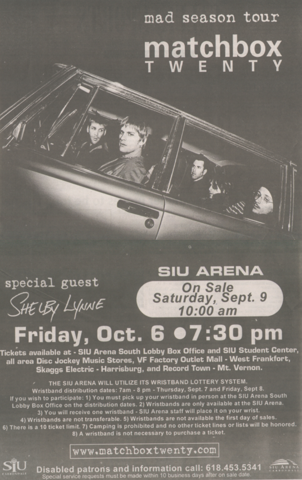An ad for the 10/6/00 Carbondale concert (8/18/00)