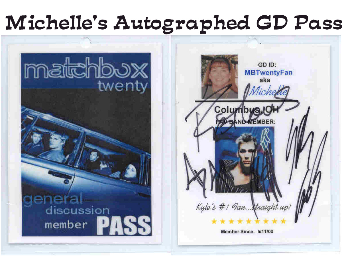 Michelle's autographs from the 10/14/00 show in Columbia, MO