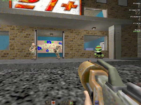 Gibcity2.zip | Gibcity2. Now if your looking for some great fun in the city then this is your level. [21+] Sarge has done a fine job designing this level took him eight weeks to build this level and you will see where all his time went too....hehehehe so much for having a life...hehehe. This is some fine work coming from Virtus DMM2 level editor. I played this level with 10 Eraser Bots and they had a good time.(if only they could tell me how much they liked it besides kicking my tail all over the place) Please NOTE that this level has custom graphics (well worth it) and it's a 2.15 meg download. For more screen shots goto the Gibbed website. (this link is to thier news page) |
