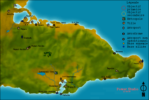 | - Le point rouge et blanc qui vous repr�sente sur la carte est en bas � gauche du M de Maisi. Rep�rez le canyon sur lequel passe un pont : la route menant � Maisi.