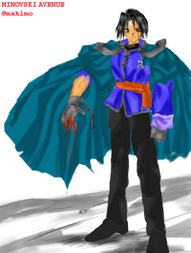 ・・・・・意味がない。なんか、RPG風のわけわからない服って時々描いてみたくなりませんか?しかも忙しかったのでかなりシンプル(手抜き)。ばんそうこうを意味もなくつけるのも私のクセだったりする。
