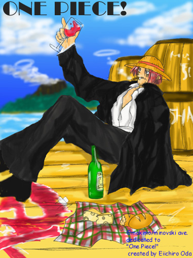 ONEPIECEより、赤髪のシャンクスです。いやもぉぉぉぉぉはまっちゃってさワンピース!で、シャンクスとかすげぇえ好きなので、シャンクスです。いや、もう腕を失う所で大泣き、ルフィに帽子を授ける所で大泣き。