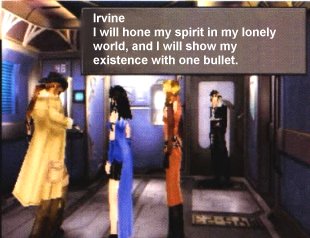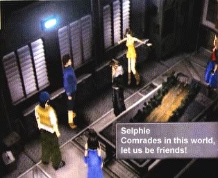 Squall, Rinoa and Zell at the cafetaria (I think...)