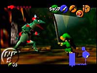 WARNING about this level: if you have your Deku shield equipped and you get burned by a fire bat or something, the shield will burn away! So use the Hylian shield unless you need your Deku shield to fight lizardmen or bush guys. You can buy another shield from a bush guy on the left side of the Big Room.In the first room, use one of the bomb plants to blow open the doorway. Then head into what I will from now on refer to as the Big Room. Make your way to the right side and use the provided bomb plant to blow up the doorways and that laser-shooting thing. Take the doorway that leads to a passageway (the other just leads to a gossip rock) and kill the first couple of lizards. Watch out because when these lizards die they explode. On the right wall near the back of the passage is a doorway but you have no bomb plant to blow it up with...kill one of the lizards next to the doorway and let its explosion as it dies open the doorway for you. This room has some bats and a gold skulltula in it. Now move on to the end of the passageway and drag a statue onto the switch to open the door. Go through the next passage and then you'll find yourself in the lava room, facing two deadly lizardmen. These guys are tough, Z target them and use your Deku shield to block and counter with slashes or jump slashes. You can also shoot them with the slingshot but that's usually more trouble than it's worth.After you kill the two lizards go through the new door that just opened. Notice the bombable doorway down this next passage. Go on a bit further and you'll see a bomb plant you can use to blow it up. There's nothing really useful in that room though. Move on down the corridor and kill those lizard things by hitting their tails (watch out they blow up too). Use a Deku stick to light all the torches in the room and open the door. You'll now be back in the Big Room. Step on the switch in front of you to unlock a door across the way. Now head to the other side of the room and find the door that was just unlocked but don't go through it yet. First blow up the doorway next to it and get the dungeon map. Now go through the door.In this room use a bomb plant to blow open the doorway and go in that room. Throw the bomb plant just inside that room at the three statues and one will come alive and chase you. Throw a Deku nut at it to stun it and then slash it with your sword. Then run away because it will try to chase you down and then blow up. Now retrieve the compass from the treasure box and leave the room. In this room, take the bomb plant that's next to the door you just went through and place it right in between the two rows of bomb plants. If you place it right when it blows every bomb plant should go off. This will lower the stairway leading to the second floor. Go up the stairway and around to the doorway and through it. In this room three of the statues come alive and chase you, and the fourth has to be moved. You don't have to fight the three statues if you're careful not to touch them in any way. Just move the statue that's in front of the ladder out of the way and go up the ladder to hit the switch to open the door.Now you'll once again be back in the big room but this time on a bridge at the top of it. Go across the bride to the other side, jumping over the hole in the middle. Now you'll end up in the moving spikes room. Make your way to the opposite side where you'll find a gray block in front of a ladder. Use the block to get on top of the platform containing a treasure chest and a bomb plant. Use the bomb plant to blow open the door at the top of the ladder. You'll need to time it right. Wait until the bomb blinks rapidly before throwing it across to the doorway. Once you've done that go through the doorway. Now use your slingshot to shoot the gold eye on the wall past the pillar of fire and the fire will disappear. Jump across and go through the corridor to reach the upper lava room with two more lizardmen. Kill the lizard men and go through the newly opened door. Shoot the gold eye on the wall opposite you to get rid of the first flame, then jump to where it was and turn left to see another gold eye. Shoot it to get rid of the second flame. Then jump across.In the next room, which is the moving spikes room again, jump straight across the gap and then get the treasure box to your right which contains bombs. If you wish you can jump down and bomb a doorway to your left to reach a room with two bush guys that sell you crap. I wouldn't recommend it though 'cause it's a hassle to get back up. Move on down the passageway and step on the switch. This switch enables a moving pillar which gives you an alternate way to get to the second floor. Now go right and find the bridge. On the other side is a bombable wall with some rupees in it if you want to get it. In any case, drop a bomb down each of the holes in the bride to blow up the two eyes of the old dead Dodonogo. Once both eyes have been blown up it's mouth will open. Use the pillar to get down and enter it's open mouth.In this room go through the doorway on your right to enter the block puzzle room. When you come to two movable blocks, pull the ground-level block to underneath the other one. Then climb on top of it and push the other block off to the other side. Now push this block to underneath the third block. Push the third block out of the way and head down this corridor. At the end of the corridor is another moving block. Push it off the edge, then pull/push it into the hole in the middle of the room. This will open the boss room door. In the boss room, blow up the square in the center of the room, open the small chest to refill your bombs, and drop down.
