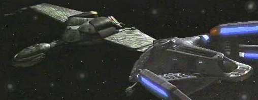 (The Pheonix-X flies beside the Bochnah outside the orbit of the Klingon Planet, Klinzai)