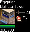 The Ballista Tower has more attack strength than the Guard Tower. The Ballista Tower cannot be upgraded. Other Towers include the, Watch Tower, Sentry Tower, Guard Tower.