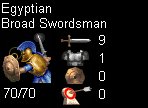 The Broad Swordsman has more hit points, attack strength, and armor than the Short Swordsman. The Broad Swordsman can be upgraded to the Long Swordsman.