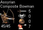 The Composite Bowman has more hit points, attack strength, and better range than the Improved Bowman. Other archers include the Chariot Archer, Horse Archer, and the Elephant Archer.