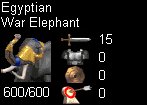 The War Elephant is a cavalry unit with many hit points and special attack. The War Elephant causes trample damage to all adjacent enemy units. The War Elephant's attack strength cannot be upgraded because it already causes so much damage to other units. For example, if ten men attack a War Elephant, all ten men receive 15 points of damage, so that the War Elephant causes 150 points of damage per round. Other cavalry units include the Heavy Cavalry, Cataphract, the Chariot, and the Scout.