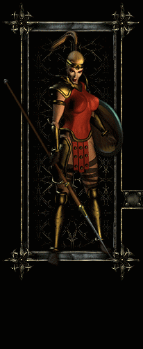 Amazon -- This powerful woman warrior belongs to nomadic bands who roam the plains near the South Sea. The wandering of these groups often brings them into conflict with other peoples, so the Amazon is accustomed to fighting to defend her own. This lifestyle has made her fiercely independent and able to weather severe hardship and travel. While her skill with the bow rivals that of the Rogues, the Amazon is also adept in the use of spears and other throwing weapons, as well as in hand to hand combat. The Amazon is much sought after as a mercenary, in which she will be loyal as long as her own ends are also served.