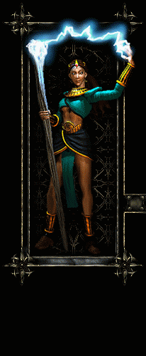 Sorceress -- One of the rebellious women who have wrested the secrets of magic from the male dominated Mage-Clans of the East, the Sorceress is an expert in mystical creation ex nihilo. Though somewhat lacking in the skills of hand-to-hand combat, she compensates for this with fierce combative magics for both offense and defense. Solitary and reclusive, the Sorceress acts based on motives and ethics inscrutable to most, sometimes seeming capricious and even spiteful. In reality, she understands the struggle between Order and Chaos all too clearly, as well as her role as a warrior in this battle.